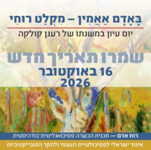 באדם אאמין – מקלט רוחי – יום עיון במשנתו של רענן קולקה תאריך אוק 16 2026 שעות 8:00 am - 3:00 pm שיתוף